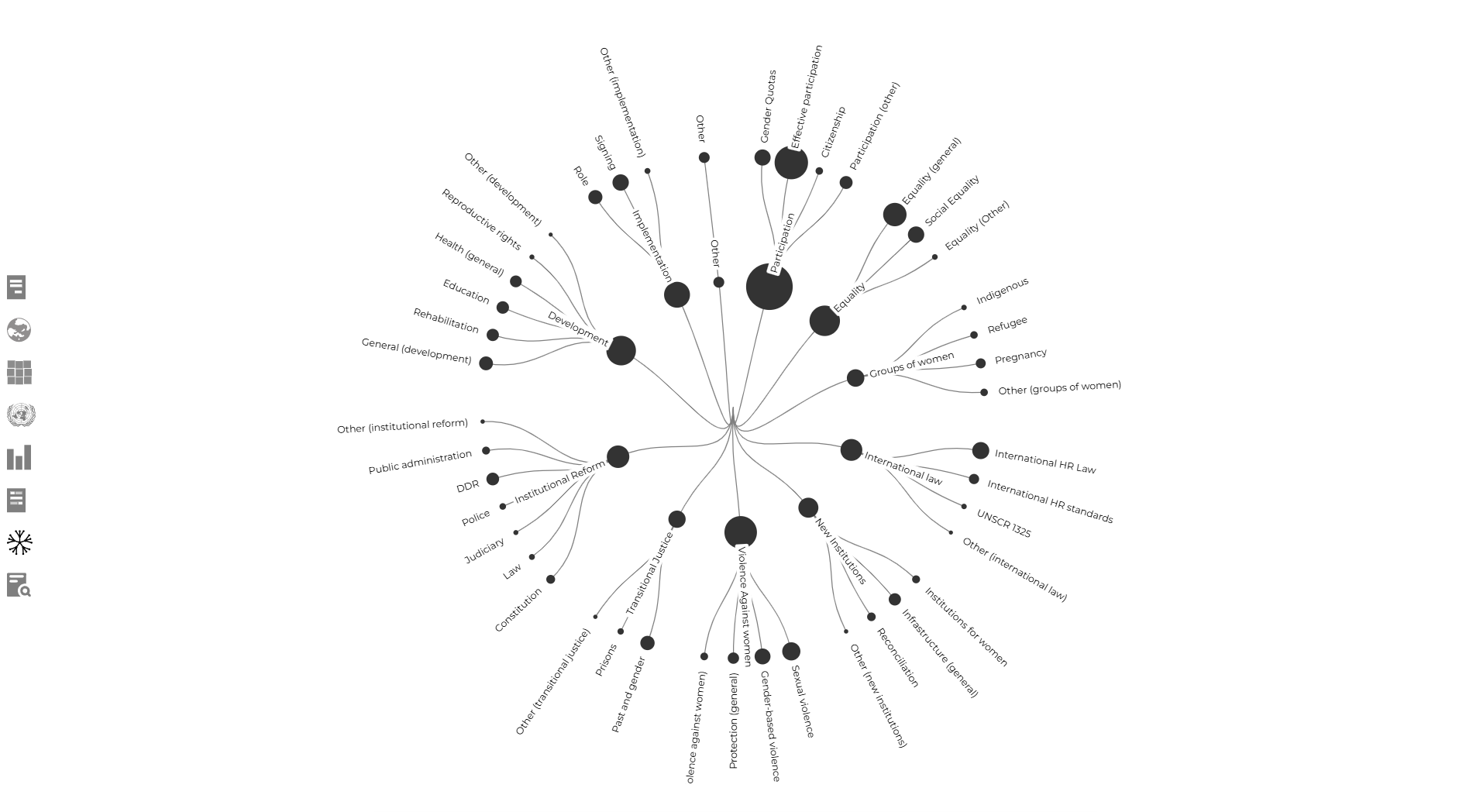 This visualization uses the PA-X database to show how and to what extent women, girls, and gender are taken into consideration in peace agreements around the world.